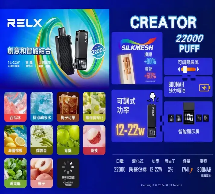 悅刻積木 RELX Creator 22000 口換彈式主機以其革命性的22,000口超長續航與智能像素互動螢幕,穩坐高性能換彈設備的領導地位。現正推出的「買五盒煙彈送主機」活動,讓消費者能以最具競爭力的成本,一次擁抱頂級霧化科技與充足口糧。對於尋求極致性價比與卓越體驗的用戶而言,此刻正是最佳入手時機。